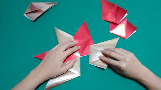 - Dobrar ao meio na diagonal, formando um triângulo.